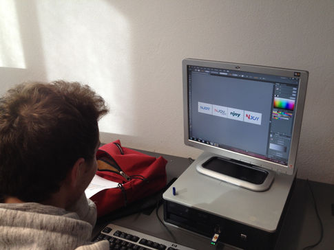 Os alunos do curso profissional de Design, são os responsáveis pelo Design do NJOY. A começar pelo logótipo, pins, roll up's e embalagem.